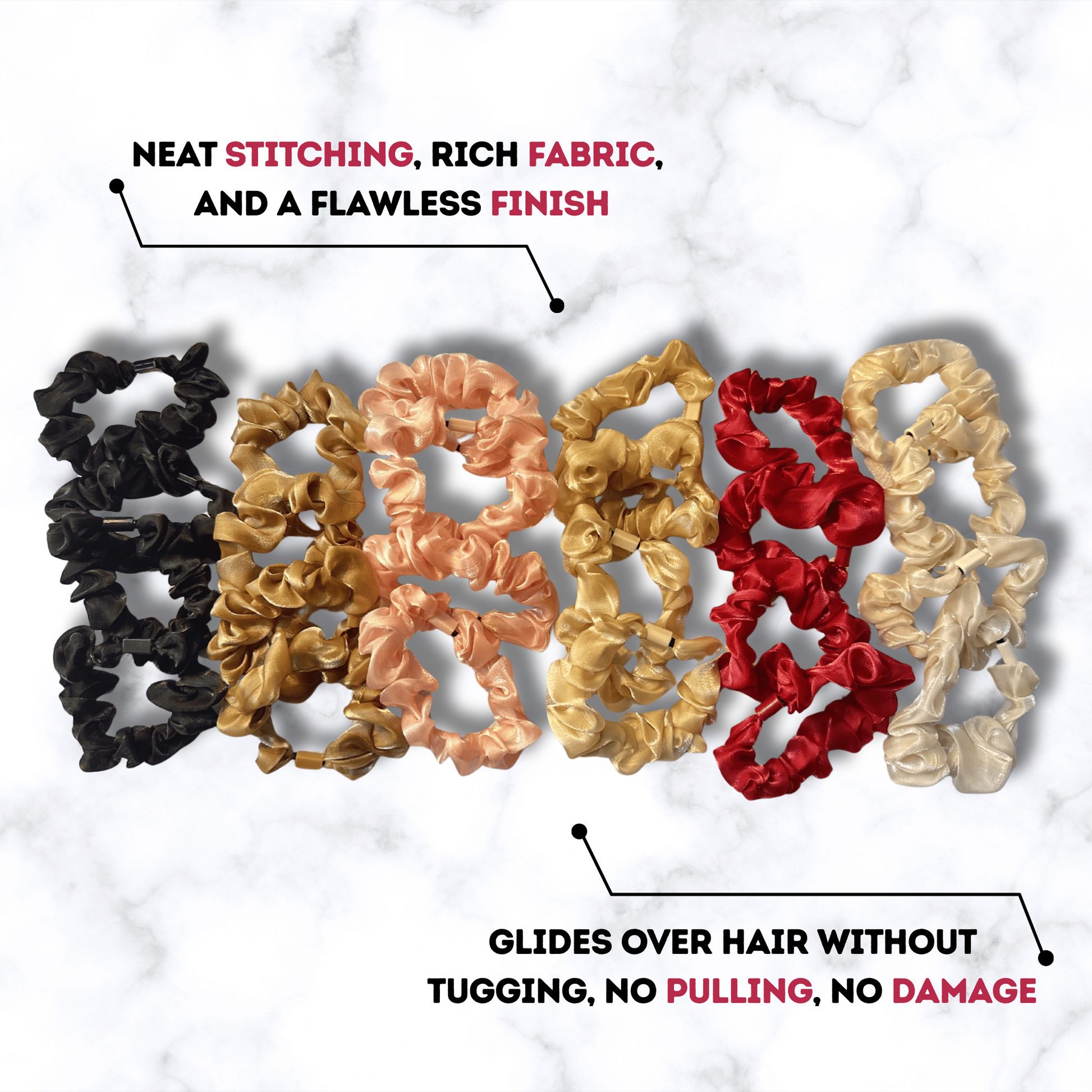 ♥️Stylish and Versatile Get ready to tie up your hair troubles in style! These scrunchies are ideal for luxury hair care. Elevate your hair styling with our Shiny Silk Scrunchies. Order now and experience the difference.